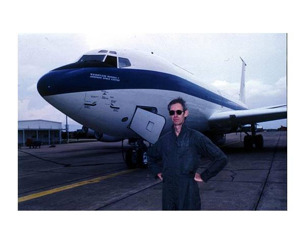 ‘We had a family friend who was an astronaut. She wanted a photo of me being sick during a research flight on NASA’s microgravity ‘Vomit Comet,’ to email to our young daughters. She asked the on-board cameraman to make sure he had a good shot when the time came. Fortunately, and to preserve to honour of UK physiology, I was not sick during the flight. When we touched down at NASA’s Ellington Field, the photographer said he take a photo of me in front of the plane instead. I did my best Tom Cruise impersonation.’